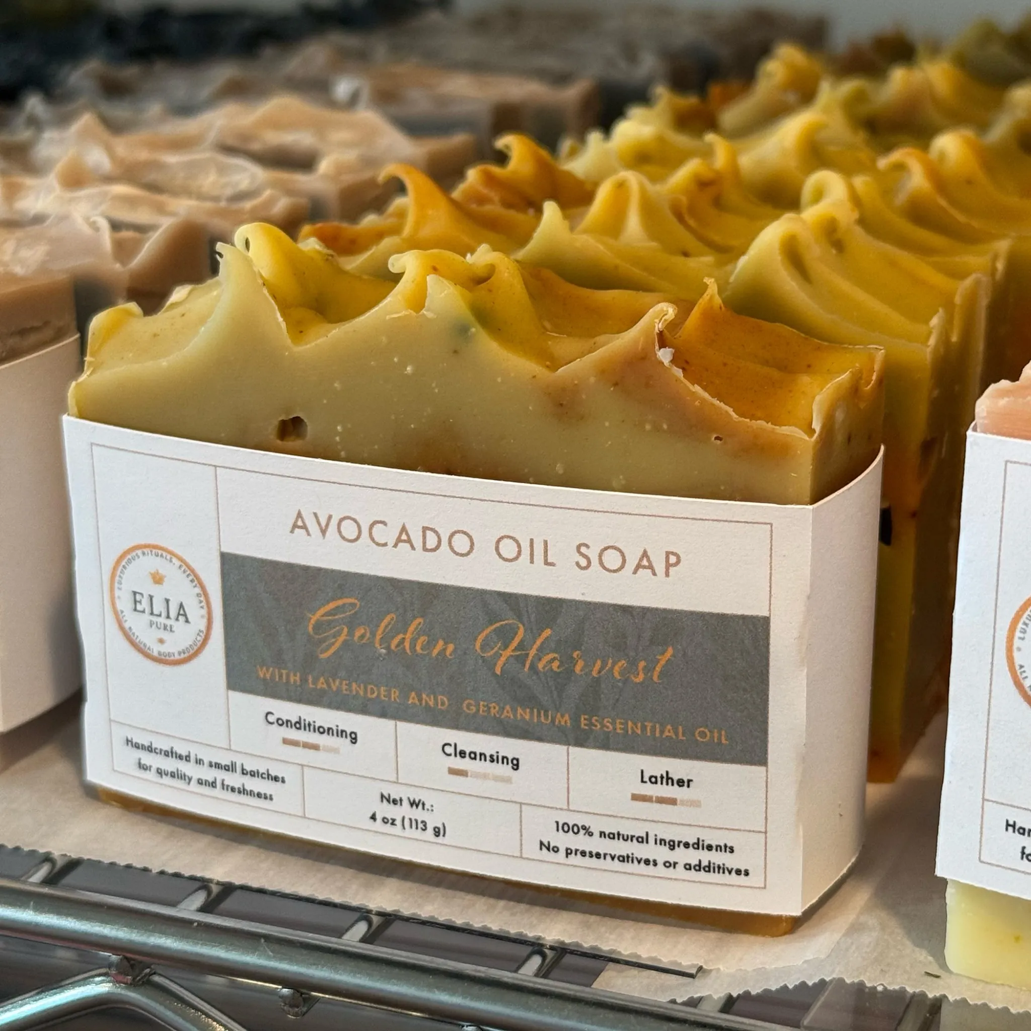 Experience the nurturing touch of nature with Golden Harvest, a handcrafted soap that blends luxurious oils and botanical goodness. Infused with nourishing olive and avocado oils, this gentle soap delivers hydration and care, leaving your skin feeling soft and refreshed.